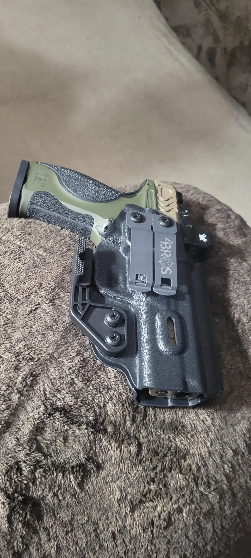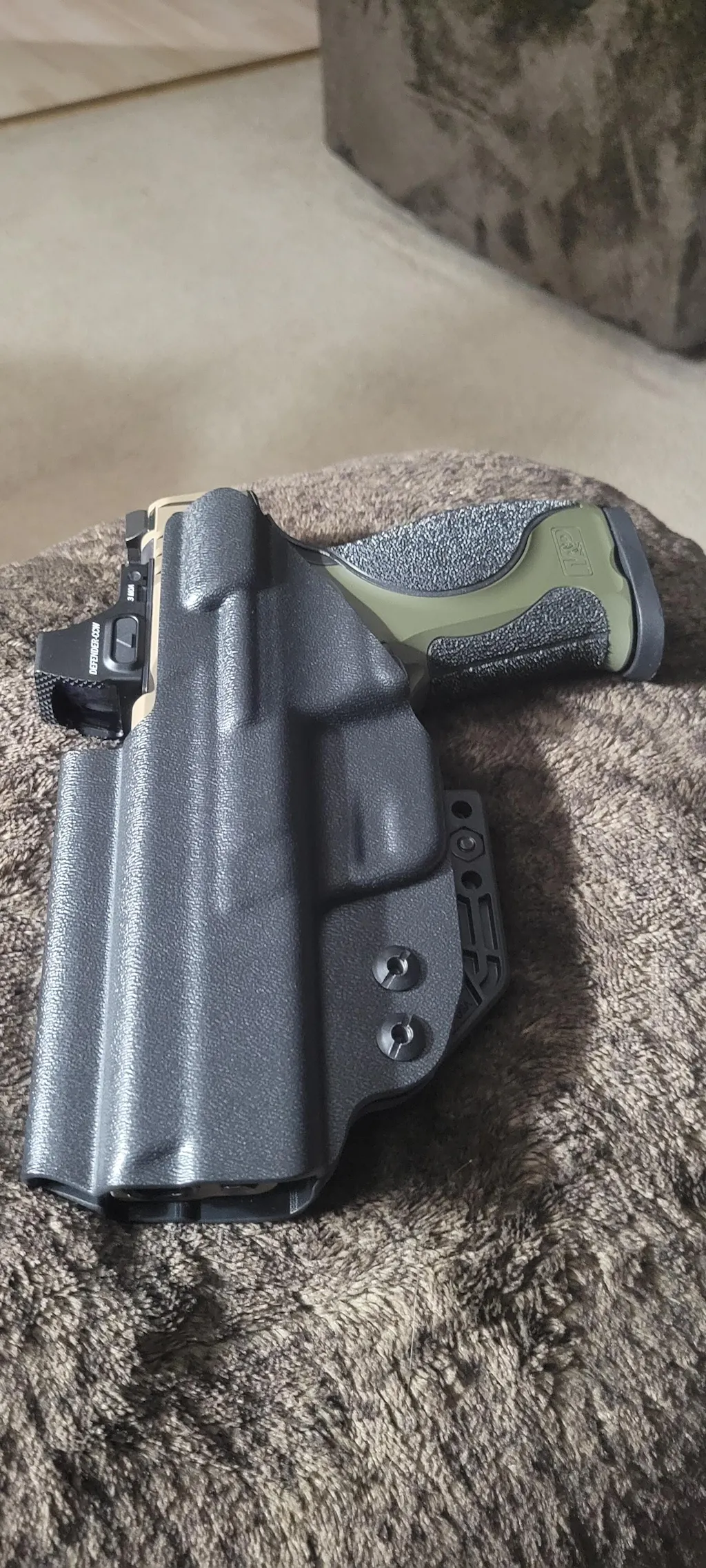 This IWB holster supports discreet appendix or strong-side carry and is compatible with multiple clip and claw configurations to enhance concealment without sacrificing comfort.