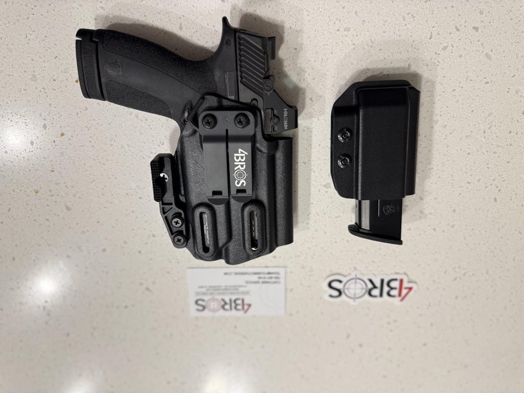 This right- or left-hand inside-the-waistband (IWB) holster and magazine carrier combo is precision-built for the Smith & Wesson M&P Shield X and Shield X Performance Center Carry Comp equipped with the Streamlight TLR-7 Sub 1913 footprint. The package includes a Modwing on the holster and your choice of Discreet Carry Concepts Monoblock or Ulticlip UltiTuck belt attachments on both the holster and the mag pouch.