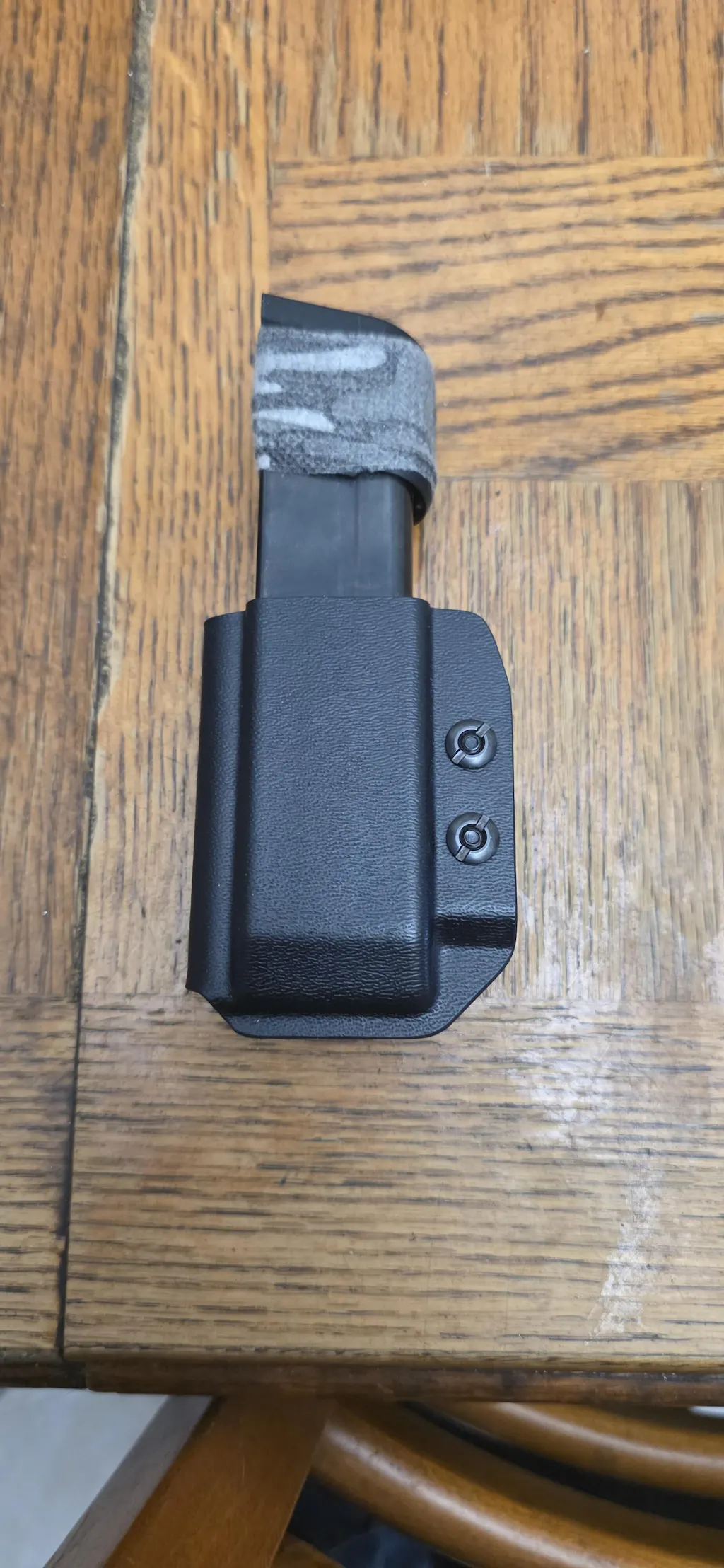 Good mag pouch you don't even notice it secure fit with mag once you adjust it. Secure fit as well have practiced with it for short time no real troubles fits my 21 rnd mags well